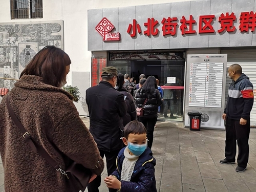 “不要打挤,前后保持间隔1.5米。”上午9时许,西城街道小北街社区党群服务中心格外忙碌,办理复工复产证明和居住证明的市民在社区大厅外排起了长龙,一位戴着红袖标、剃寸头的高大个在旁边不时提醒市民。