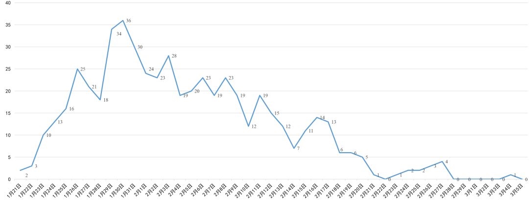 四川省新冠肺炎每日新增确诊病例变化曲线图