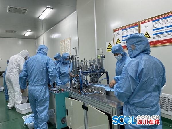 该公司生产部负责人范程钞介绍,自1月底,公司便紧急从东莞订购了口罩机,并且到成都、德阳、乐山等地购置无纺布、熔喷布等口罩生产原材料。“我们本来就是一家医药企业,可以保证无菌操作环境,还有相关技术人员,只要设备、原材料到位,就能快速实现转产口罩。”