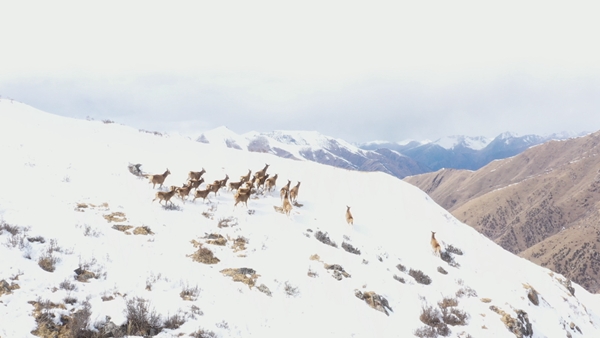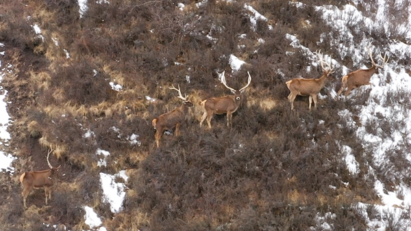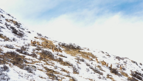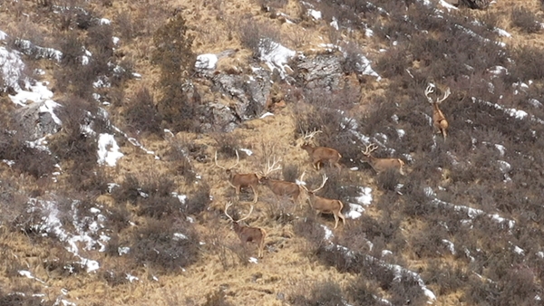 四川在线消息(刁海瀚 记者 游飞)3月5日,有网友在石渠县真达乡自然保护区拍摄到大批野生白唇鹿群,在雪山上追逐嬉戏,甚为壮观。画面和视频一下刷爆网友朋友圈,大家视线纷纷被这萌萌的高原精灵所吸引。