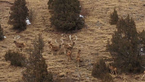 图片和视频:白唇鹿群在石渠县真达乡自然保护区群逐嬉戏。 秦晋翔 摄