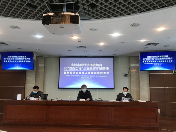 3月6日,成都市新经济发展委员会、中国人民银行成都分行营业管理部、成都市地方金融监督管理局联合举办成都市新经济梯度培育和“双百工程”企业融资专员聘任暨新经济企业线上贷款融资对接会。