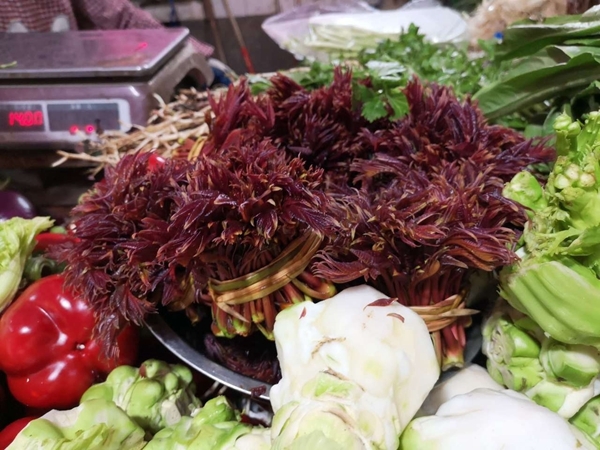 近日,记者在达州市通川区朝阳中路的金海商城农贸市场看到,10多个蔬菜摊中仅有一个在卖香椿。摊主告诉记者,目前香椿还没有大量上市,价格仅为去年同期的一半。