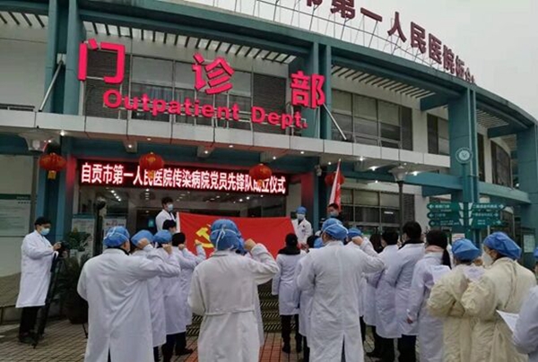 自贡市第一人民医院直属板仓党支部承担全市新冠肺炎定点救治重任,自1月24日收治首例疑似确诊患者开始即进入24小时响应的“战时”状态。集中呼吸、重症、传染、中医等专家力量开展会诊48次,组织诊疗、防控知识等培训10余次。开通互联网医院网上24小时发热门诊,线上线下有序接待发热患者。成立党员先锋队,采用中西医结合、营养、心理等综合疗法,根据确诊9例患者不同年龄、不同体质,在全省率先实施大剂量胸腺肽a1增强细胞免疫功能用于救治,9例患者无1例陷入危重,于2月27日全部治愈出院。