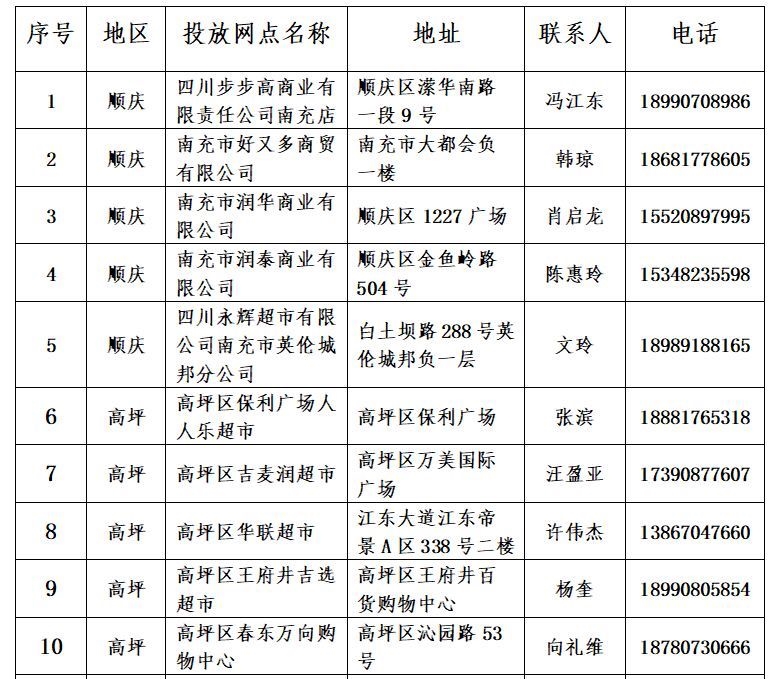 疫情防控期间,为有效平抑猪肉价格,满足市民生活需求,根据《南充市疫情防控期间储备冻猪肉投放工作方案》要求,从即日起在市主城三区部分商场、超市、市场投放政府储备肉,现将有关投放情况公告如下: