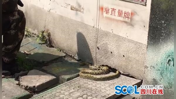 到达现场后发现,1条约1米5长的菜花蛇,懒洋洋的盘旋在墙脚下沐浴阳光。劝说人群散开后,消防队员戴好防护手套将其抓住,装入事先准备好的编织袋中,带到城区外空地将其放生。