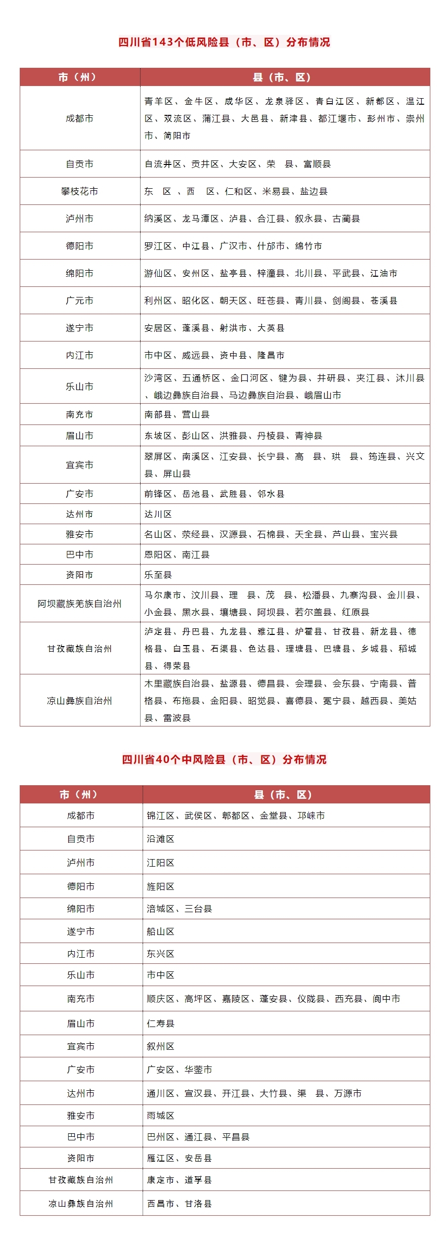 全省现有无现症病例区(低风险县<市、区>)143个、散发病例区(中风险县<市、区>)40个,无社区暴发和局部流行区(高风险县<市、区>)(过去24小时新增南部县为低风险县<市、区>)。