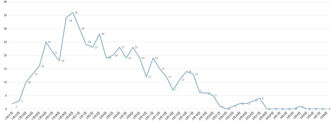 四川省新冠肺炎每日新增确诊病例变化曲线图