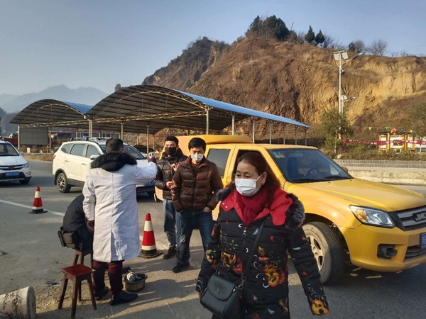 三省联合成立的2支临时党支部继续发挥作用,交流来自重点疫区人员信息情况。“前两天就有一辆鄂牌车辆到我们这赶集,居民看到通知我们后,我们先让卫生院和派出所查体温、查轨迹,后来跟对面交流了解到是跟中庙镇相邻的乡过来赶场的,我们检测无异常就让人家赶完场回去了。”杜前文说。