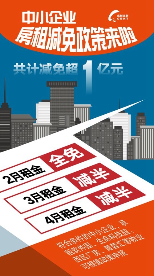 四川在线消息(记者 蒋君芳)为进一步减轻中小微企业生产经营困难,助力企业稳产满产,成都高新区积极落实省市相关政策,发出区级行政事业单位和区属国有企业减免中小企业房租的通知,对承租上述国有资产经营用房从事生产经营活动的企业实行2020年2月份租金全免,3、4月份租金减半。成都高新区财政金融局相关负责人介绍,根据初步测算,区属国有企业预计减免租金超过9000万元,行政事业单位预计减免租金超过1000万元,总计减免租金超过1亿元。
