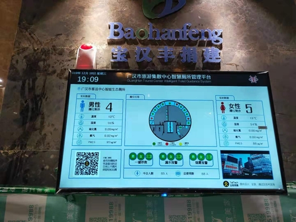 “智慧厕所”更融入了物联网传感技术及智能硬件,通过智能导厕、臭气监控、蹲位显示、客流识别、手机小程序等功能模块,打造厕所实时感知平台。