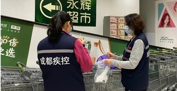 2月28-29日成都市疾控中心环学科对居民关注的商场超市购物环境进行采样监测,监测包括太古里、奥克斯广场、麦德龙、伊藤洋华堂、永辉超市、家乐福及红旗、舞东风、喔喔等部分小型连锁超市、便利店,重点是自动扶梯扶手、购物推车/购物筐把手、冰箱冰柜拉手、自助缴费触摸屏/数字键盘、存包柜拉手、柜台台面、厕所门把手、洗手池水龙头、饮水机开关/按键、直升电梯按键、座椅扶手、小吃店取餐台面/收银处等经常触及的公共环境监测采样,共采集涂抹外环境408个点,经中心微检科检测,结果均为新型冠状病毒核酸检测阴性。