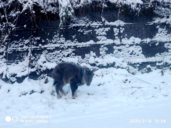 这段时间,坚守岗位的道路养护员们也用影像记录下路旁行走的斑羚、小熊猫,巴朗山巡视的白狼,林间落单的扭角羚,觅食的岩羊群,带着小崽的中华鬣羚……