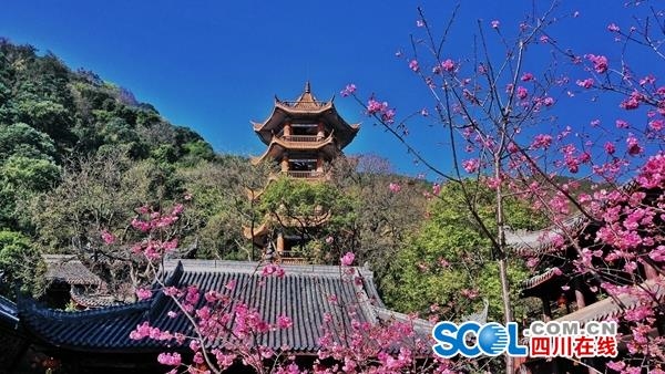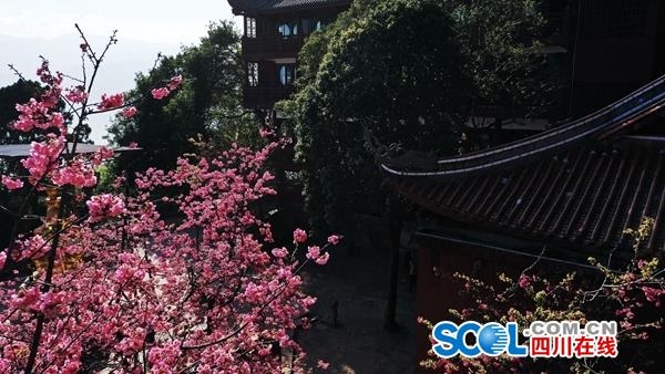 品味着这首南宋诗人方岳咏樱花的诗句,《入村》,3月9日,记者漫行在四川省凉山彝族自治州西昌市泸山之上,有着千年历史的光福寺内,古刹与灿烂嫣红的樱花辉映,却又是另外一番美景。