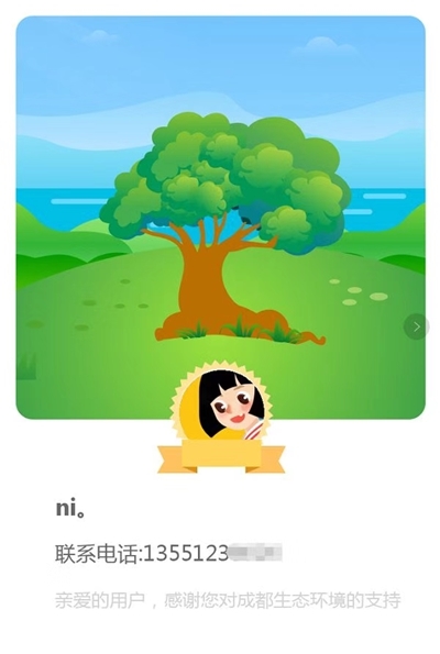据悉,本次活动为公益性质,不收取任何费用。活动时间为3月6日——3 月12日,参与用户线上种树浇水认领树苗,线上植树活动结束后,认领树苗成功的用户,你所认领的小树苗将会从“线上”统一移栽到“线下”的农场,成都市生态环境局的工作人员会将你的名字写在“爱心认领卡”上挂到小树苗上,陪伴小树一起成长。