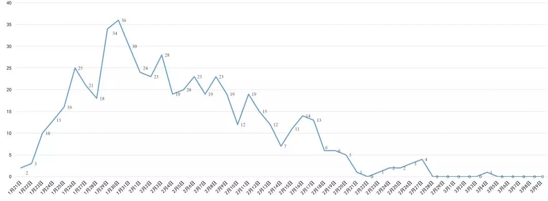 四川省新冠肺炎每日新增确诊病例变化曲线图