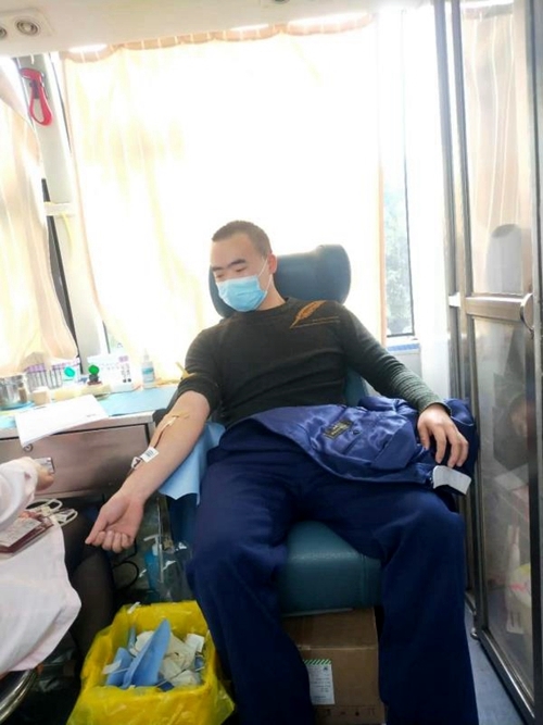消防指战员赵行洪告诉记者,自己献了400ml(毫升)的血,虽然不能赶赴湖北武汉一线参与抗疫,但通过献血,能贡献出自己的一份力量,心里很开心,也希望更多的人能参与进来,献出自己的一份爱心。