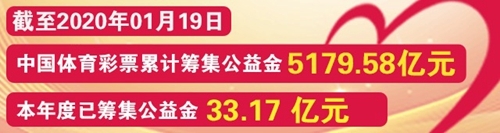 截止2020年1月19日,中国体育彩票累计筹集公益金5179.58亿元。本年度已筹集公益金33.17亿元。