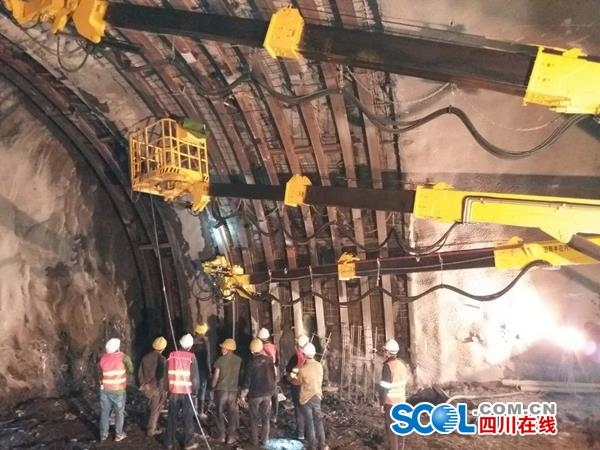 在具体施工环节,云屯堡隧道现在坚持“短开挖、强支护”。“一般正常情况下,隧道可以开挖2米左右才进行支护,这里岩石破碎,开挖0.6左右就要进行支护。”彭代建说,支护过程中还要预注浆加固,加密钢架。