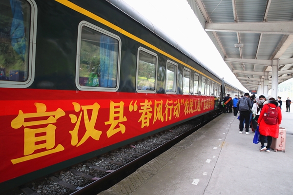 宣汉县是劳务输出大县,常年在外务工33.5万余人。疫情期间,针对农民工安全返岗问题,宣汉县主动与中国铁路西安局集团有限公司对接,由县农民工服务中心牵头,按照“政府牵头、部门协同、统一组织、供需对接、全程管控、安全温馨”的原则,采取“点对点、一站式”公路铁路联运直达的方式,有序组织农民工返岗就业。
