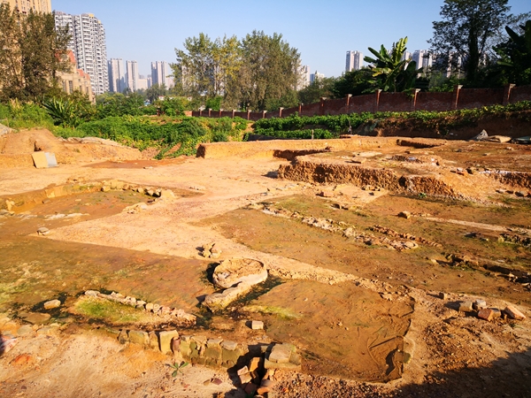 现场有窑炉,也有作坊建筑。考古人员在现场清理出的作坊建筑有11座,其中一处保存较好的作坊建于南宋,它的长度达到了14.75米,宽8.1米。北墙外残存2口陶缸(瓮),嵌于地表下,现场也打了两座八角水井,供工人使用。