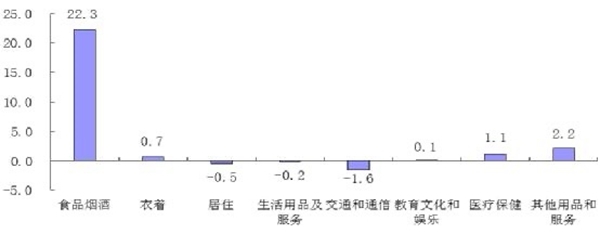 从各大类商品及服务价格同比涨跌情况看,食品烟酒类价格依旧是推“涨”主因,同比上涨22.3%。其中,猪肉价格同比上涨132.4%,涨幅较上月明显拉大。鲜菜、禽肉类价格涨幅超两位数。