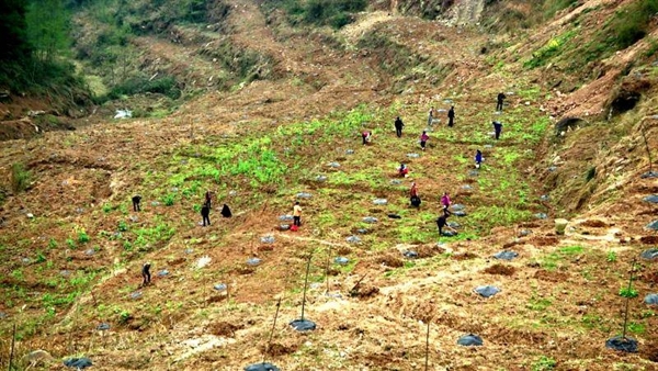 当天,在巴中市通江县文峰乡文峰村燕亭山楠竹产业园的基地内,村民挥锄挖土,种下一株株楠竹。