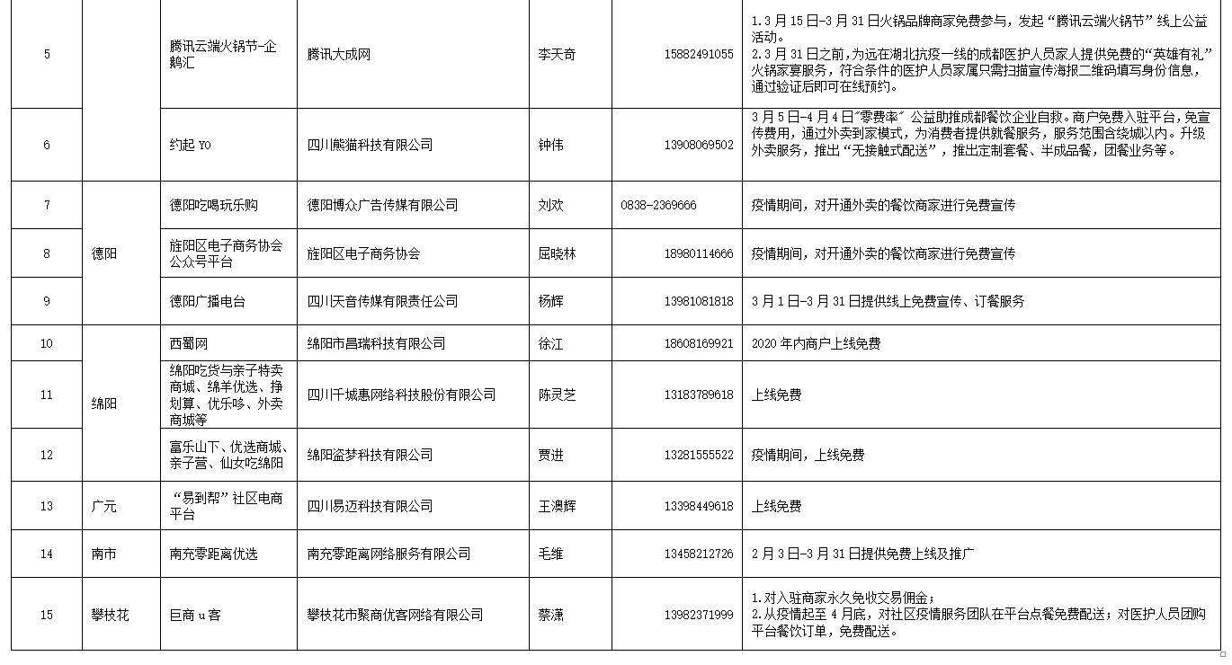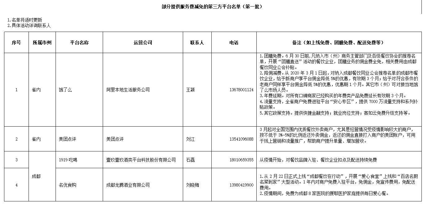 记者从省商务厅获悉,为相应号召、共渡难关,饿了么、美团点评等互联网第三方服务平台及成都、德阳、绵阳等一批本土线上餐饮平台已纷纷出台优惠措施,推动餐饮业线上线下融合发展。