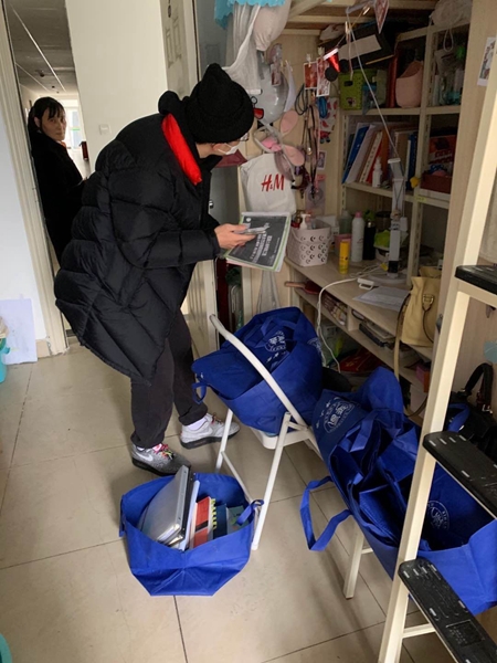 在疫情防控的特殊时期,按照学校防控疫情的整体要求,同学们宅在家中进行“云端学习”。然而,部分毕业生将完成毕业设计所需的学习资料存放在了学校寝室。怎么办?辅导员们为你们想招!他们变身“快递员”,进入寝室,收拾书籍,联系快递,将温暖送给远方的毕业生!