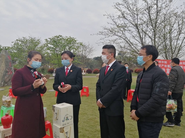 3月10日,泸州市中院、江阳区法院知识产权庭的法官们,一行十人背着小喇叭来到江阳区丹林镇樱花谷,开展知识产权服务乡村振兴法治宣传活动,旨在用知识产权服务助推农业发展,助力乡村振兴。