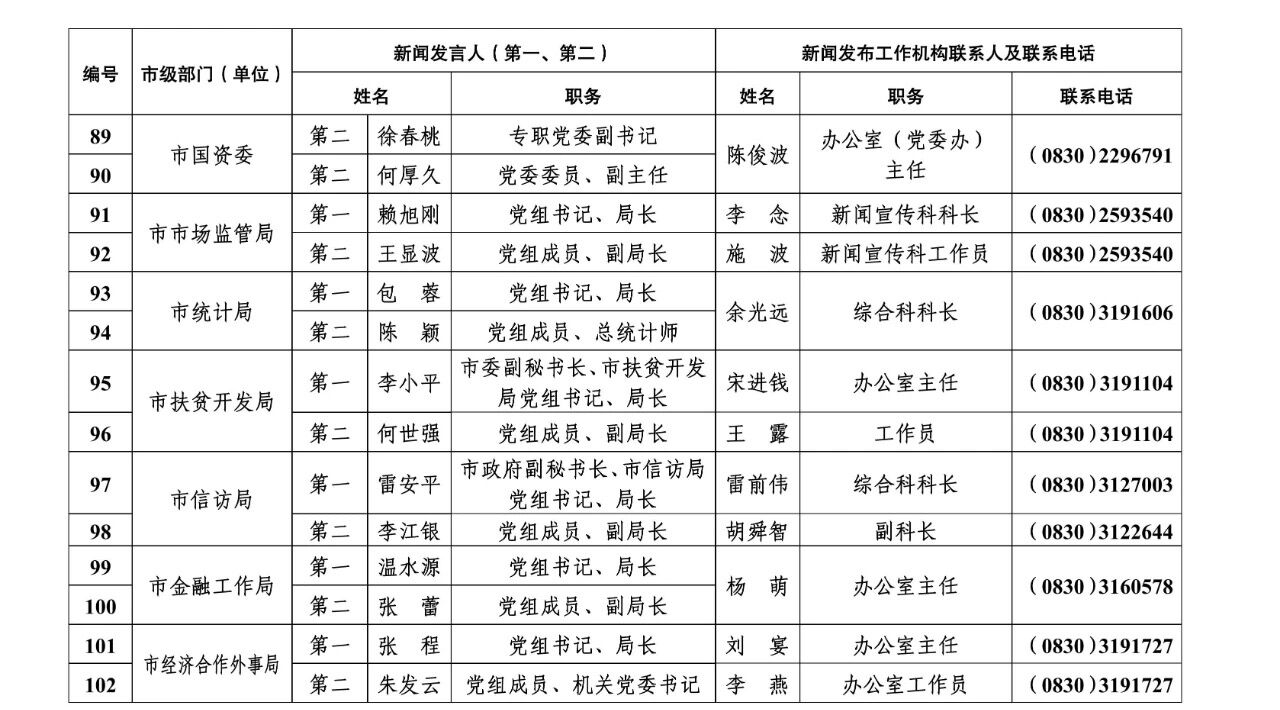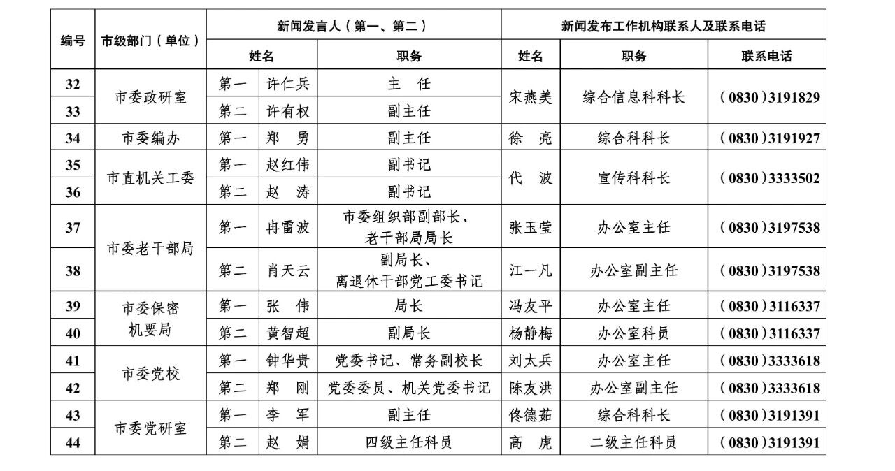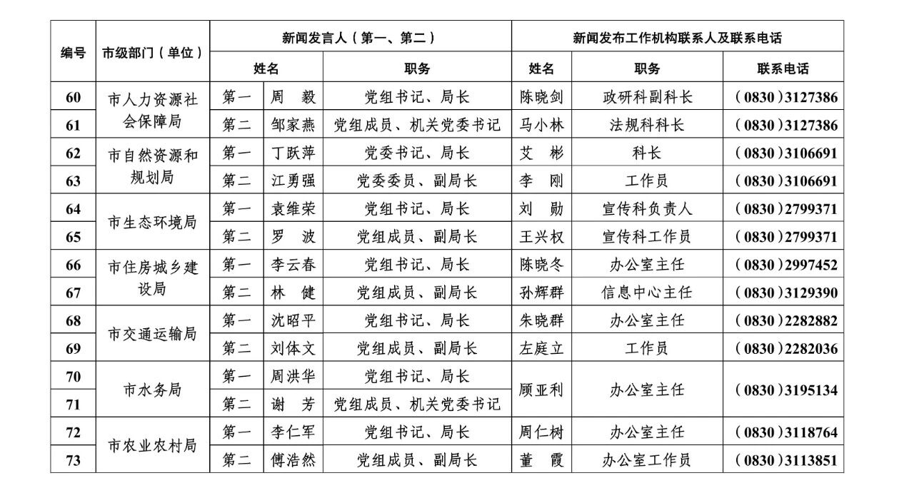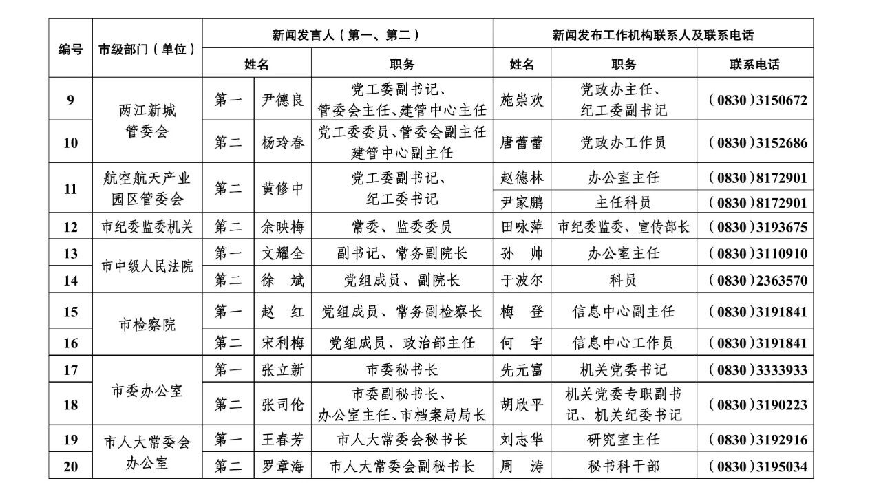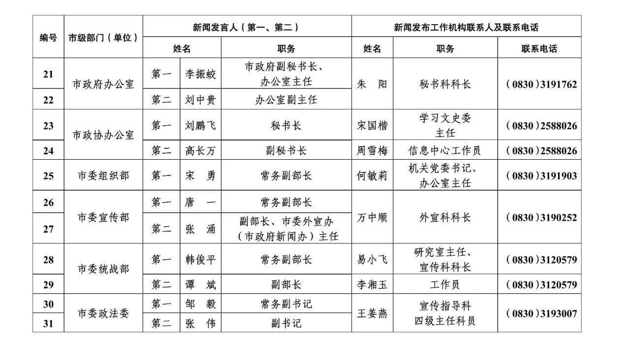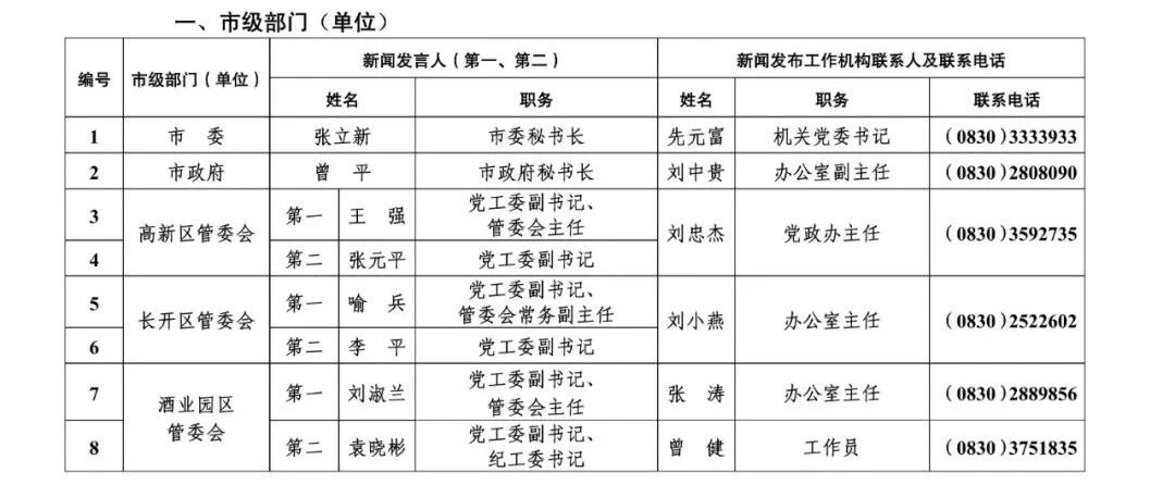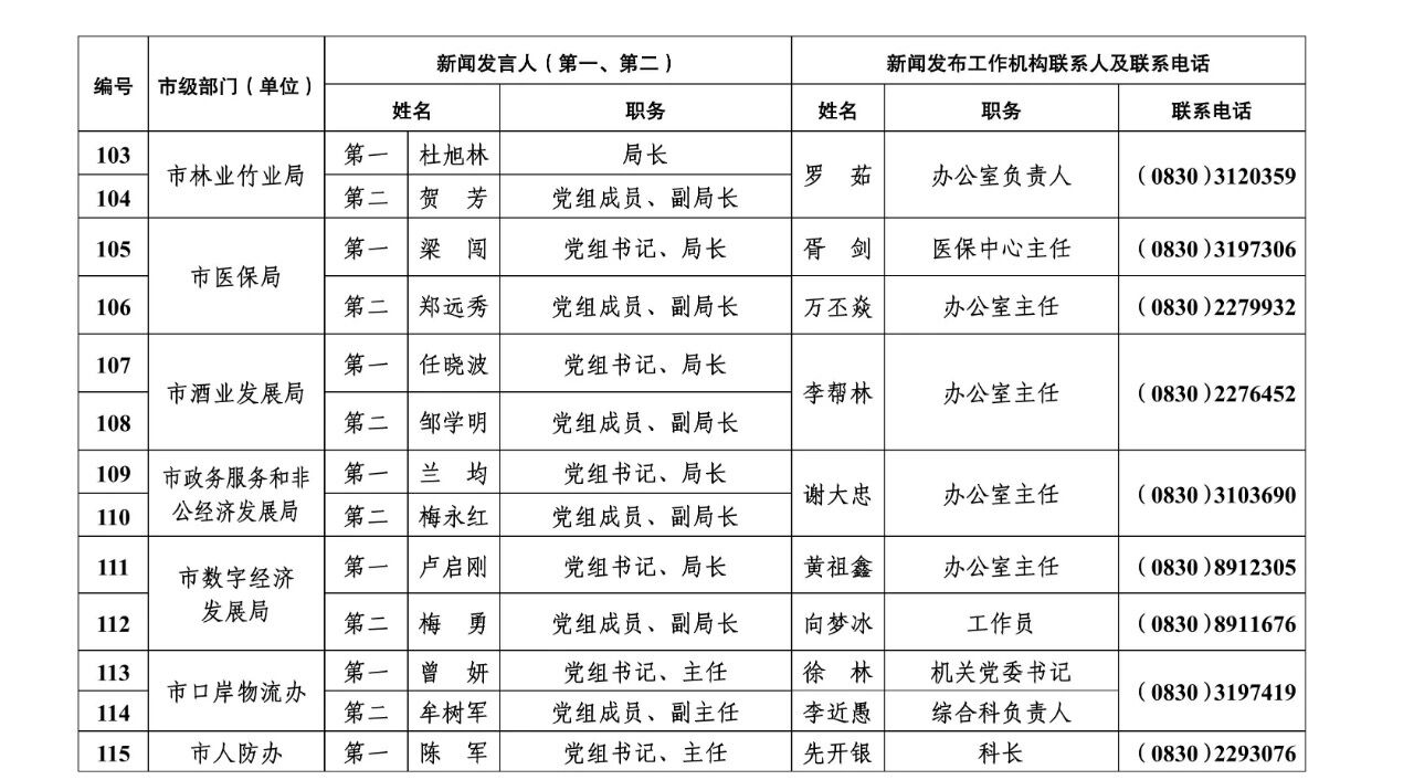 记者留意到,泸州市新闻发言人共213人,包含187名市级部门(单位)新闻发言人、26名县(区)发言人名单。同步发布的新闻发布工作机构电话,覆盖全市101个市级部门(单位)以及三区四县。