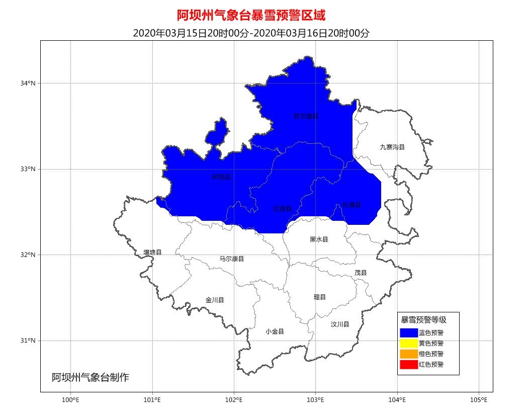 3月15日17时,阿坝州气象台发布暴雪蓝色预警。