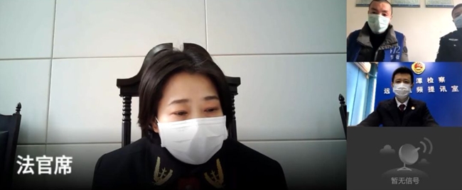 泸州市龙马潭区人民检察院提起公诉的郑某涉疫情诈骗案,通过“云上法庭”审理。龙马潭区人民检察院供图。