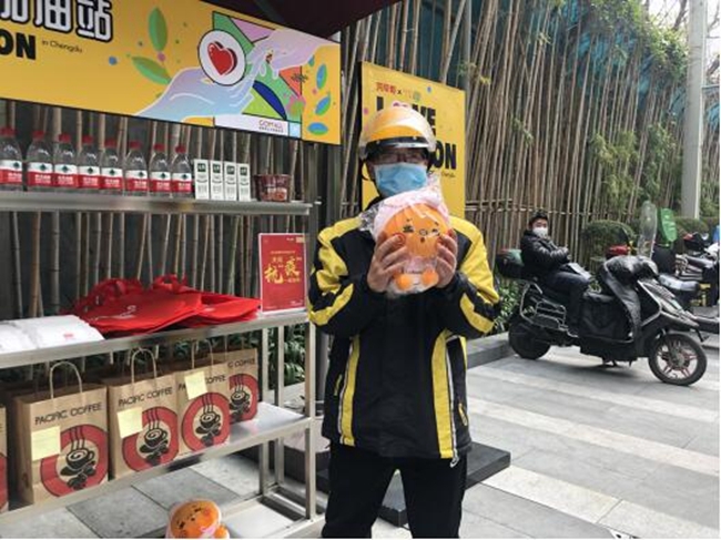 据悉,这个“城市爱心加油站”由仁恒置地联合楼宇内的延长壳牌(四川)石油有限公司、太平洋咖啡、南堂馆等企业联合发起,向外卖骑手、快递小哥、交通警察、环卫工人、社区抗疫志愿者等提供免费的食品、饮料、家居用品等爱心物品,向这些在疫情期间坚守一线的工作人员致敬,同时也搭建起一座企业和户外劳动者之间的爱心“桥梁”。