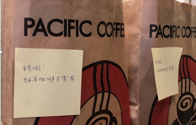 每天下午2点,是“城市爱心加油站”补货的时候。在太平洋咖啡店里,工作人员将一些刚做好的三明治和热饮依次打包好,并在每一份爱心食物上贴上写有感谢的小纸条,“辛苦啦!太平洋咖啡守‘胃’者”,虽然只是简单的话语,却让人倍感温暖。在南堂馆,工作人员也将当天的新鲜蔬菜用保鲜膜包好,第一时间送到了“城市爱心加油站”来。“非常感谢这些坚守岗位的工作人员的辛勤付出,送出这些新鲜蔬菜也是我们对他们表达一份敬意与感恩。”南堂馆(仁恒置地店)副经理彭霞说道。