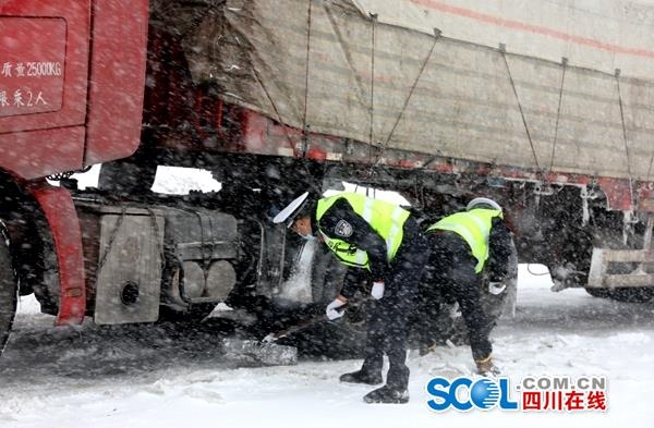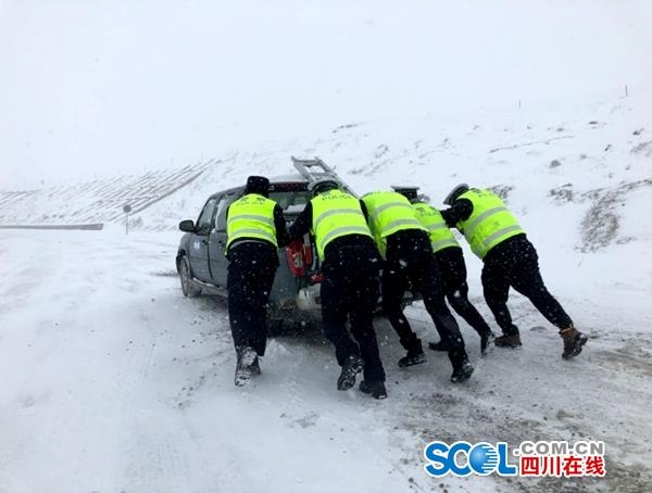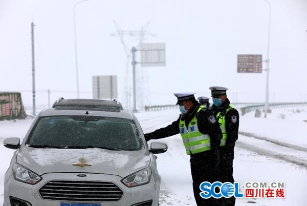 暴雪天气,致使若尔盖县境内多条道路结冰,一度出现车辆滞留,道路堵塞。为此,若尔盖县公安局交警大队成立应急救援队,对因暴雪滞留的车辆进行应急救援。同时,做好道路分段管控,开展好交通疏导、隐患排查、路面巡查等工作,发放防滑草垫6000多张,提醒车辆安全通行,确保道路交通安全。