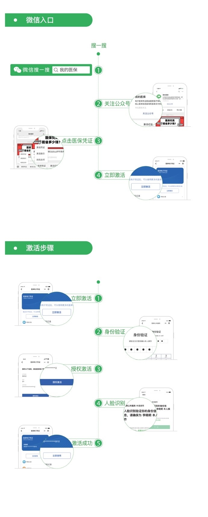 以“腾讯健康”小程序为例,参保人只需打开微信-“我”-“支付”-“医疗健康”,点击国家医保电子凭证“立即激活”,根据指引完成身份验证并“授权激活”即可。