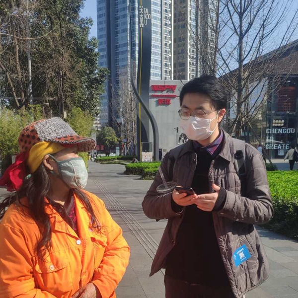 “口罩成都”活动由四川大学学生组织发起,团队成员大多为00后。疫情期间,他们走上成都的大街小巷,为环卫工人送去温暖。