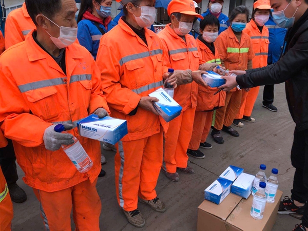四川在线消息(记者 邓翔沣)“感谢你守护我的城市,请让我守护你的健康。”近日,在成都宽窄巷子,来自多家环卫公司的代表聚集在一起,领取“口罩成都”团队为他们募集的口罩、消毒液、橡胶手套。
