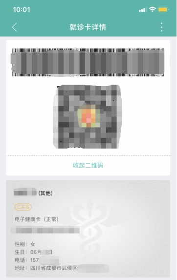 不管是用哪种方式注册的【电子健康卡】,注册成功后,在华西医院就诊时,可以把身份证当就诊卡刷。并且,在微信公众号或华医通APP上绑定实名制就诊卡后,会自动生成二维码,凭【电子居民健康卡二维码】就可以看诊了。不管就诊时是刷身份证、刷二维码、还是刷之前的老就诊卡,所有就诊记录都是同步,医生需要查看时在系统上调取就可以了。