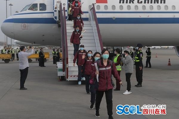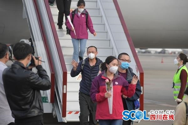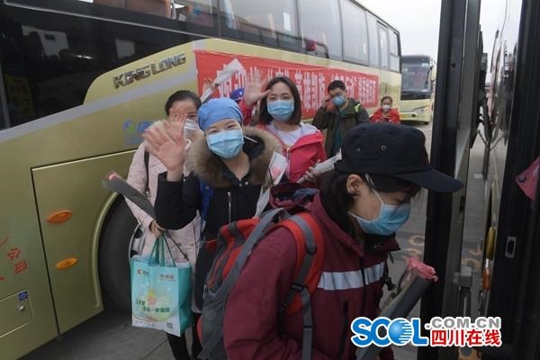 3月17日下午5时许,四川援鄂医疗队首批撤离回川队员平安回到四川。据悉,本次首批从武汉撤离的是四川第六批援助湖北医疗队,一共303名医护人员。他们分别来自成都、自贡、攀枝花、泸州、德阳、绵阳、广元、内江、雅安、眉山、资阳等地区的72家医疗机构。2月9日,他们出征达到湖北后,在武汉汉阳方舱医院开展工作。