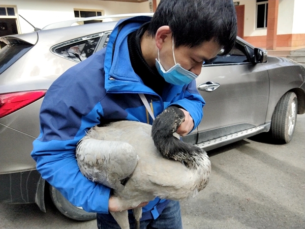 随后,工作人员将这只“落单”的黑颈鹤带回鸟类保护观测点上喂食小鱼和水,进食后,黑颈鹤的精神慢慢恢复。目前,该黑颈鹤已经送往碧峰峡野生动物繁育救护中心,进一步喂养观察,待其完全恢复体力后将放归。