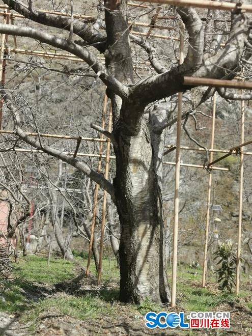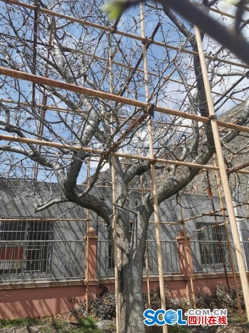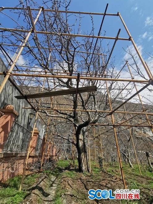 四川在线消息(记者 徐中成 周琳/视频)在阿坝州理县通化乡卡子村的村委会旁边,有一棵特别的车厘子树。3月18日,记者在现场看到,这颗树有两层楼高,树的周围被架起来的数十根钢管呵护着。“2015年架的钢管,有50多根。”树的主人卡子村民杨凤强说,架钢管,主要是便于修枝、管理和采摘车厘子。