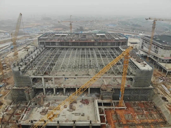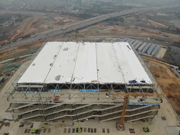 3月19日,记者从成都市住建局获悉,成都东安湖体育公园游泳跳水馆屋面钢结构封顶,多功能体育馆金属屋面封闭断水,较原定计划提前完成建设目标。