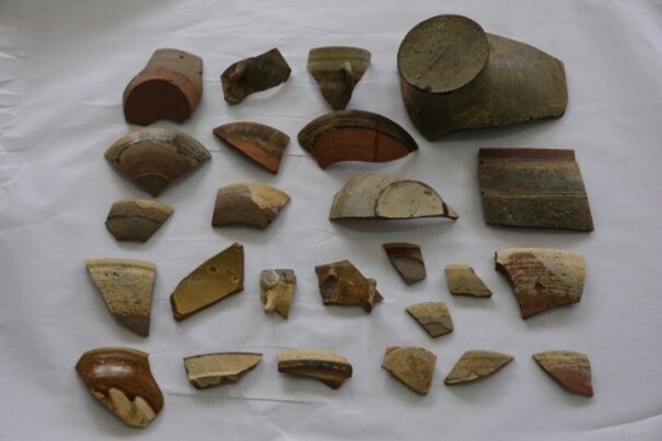 此次采集文物主要包括瓷片、陶片和建筑构件三种类型,时代为五代至北宋早期。瓷器有盆、碗、香炉等,都出自成都琉璃厂窑,具备胎色深红、青黄釉等琉璃厂窑五代时期特征。特别是瓷香炉形制与成都海滨村五代后蜀墓(957年)出土的香炉,兽足纹与邛窑遗址出土的五代香炉印模(948年)基本一致。文物包括生活器皿和建筑构件,不可能出自墓葬,应该是建筑遗址。