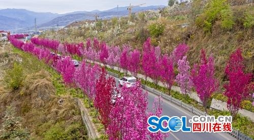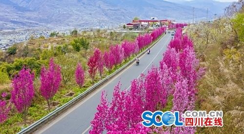 四川在线消息(冉闯 记者 文莎 摄影报道)阳春三月,正是春暖花开的好时节,在G5京昆高速汉源县九襄出口连接线上,那里的碧桃花竞相绽放,浓浓的春意扑面而来。