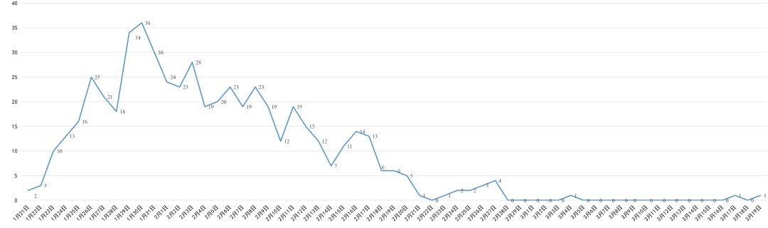 四川省新冠肺炎每日新增确诊病例变化曲线图