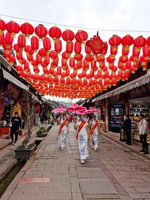 洛带古镇开放以来,为有效应对新冠疫情对商家带来的营销,精心策划“开街仪式”“旗袍走秀”“云端赏花游古镇”等主题活动,安全有序为商家引流。与此同时,积极帮助20余商家转变思维和经营方式,开网店、搞促销,从而实现多元化购销渠道合力推动经营发展。