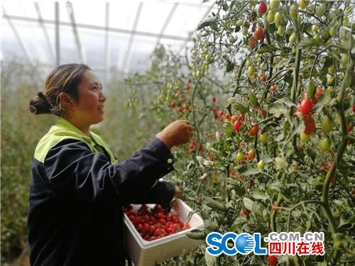 四川在线消息(陈丽 马玲 马欣艺 记者 游飞 文/图)采摘、包装、上车……3月21日,在炉霍县斯木镇吉绒村盛煌农业飞地产业园区,十多名工人忙活了一上午,终于将两吨新鲜小番茄装运妥当。当晚,这车小番茄就被运到成都,送往各大超市。