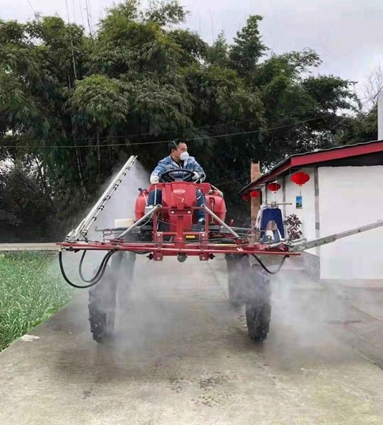 在成都市温江区农业农村局和局关工委号召下,区农机专业合作社发挥先进农机具优势,先后到地铁口、主要干道、乡村小道、农贸市场、安置小区等公共场所开展防疫消毒,大大减少政府疫情防控人力投入。 成都市关工委供图